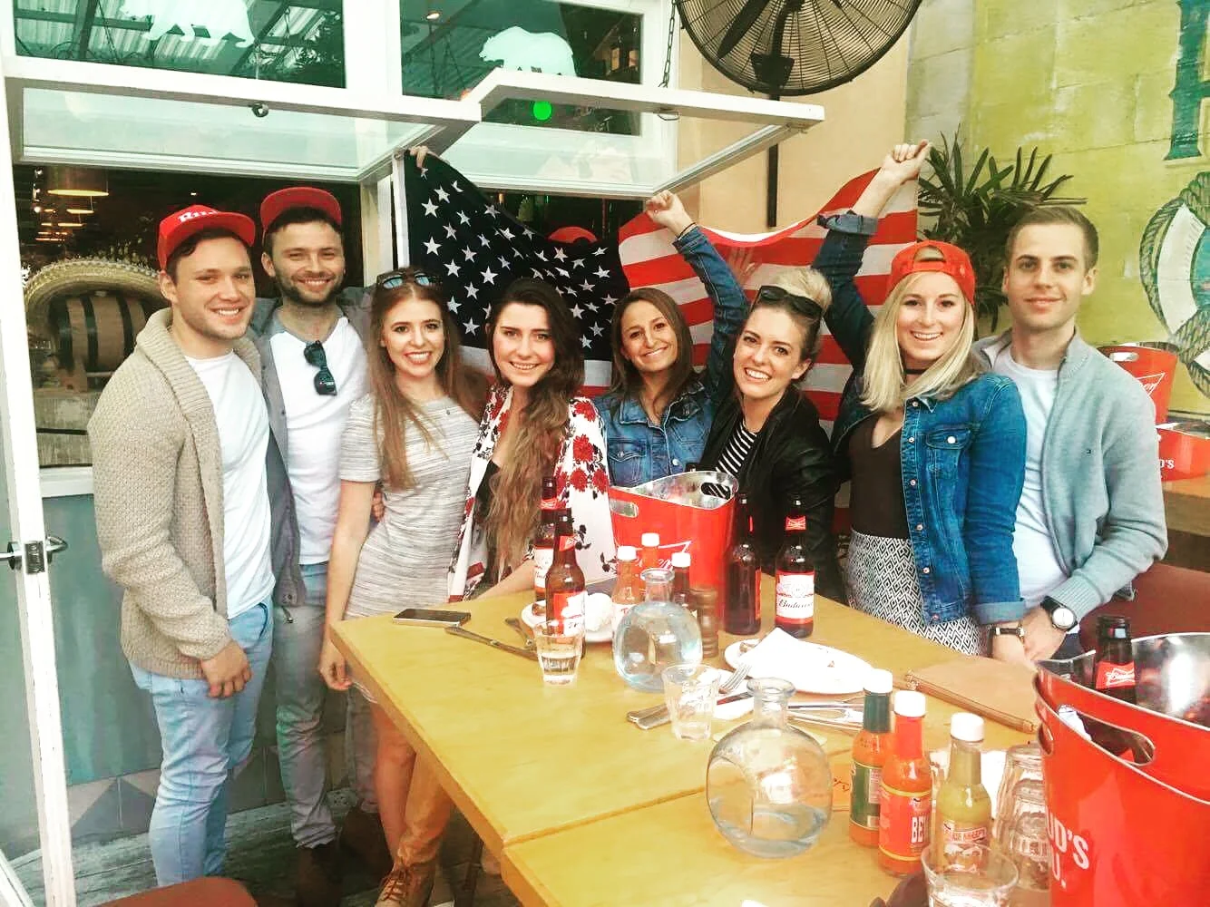 I even got to have a little mini 4th of July celebration! Aussies are very into American things. SoCal Neutral Bay is a cute little bar whose decor is dedicated to the lower half of California. And on Sunday, they served up the best of American goodies: buckets of Budweiser (hats included), apple pie (it's winter in Sydney, remember!), burgers, and spicy wings! We cheersed to 'MURICA and closed out the weekend...