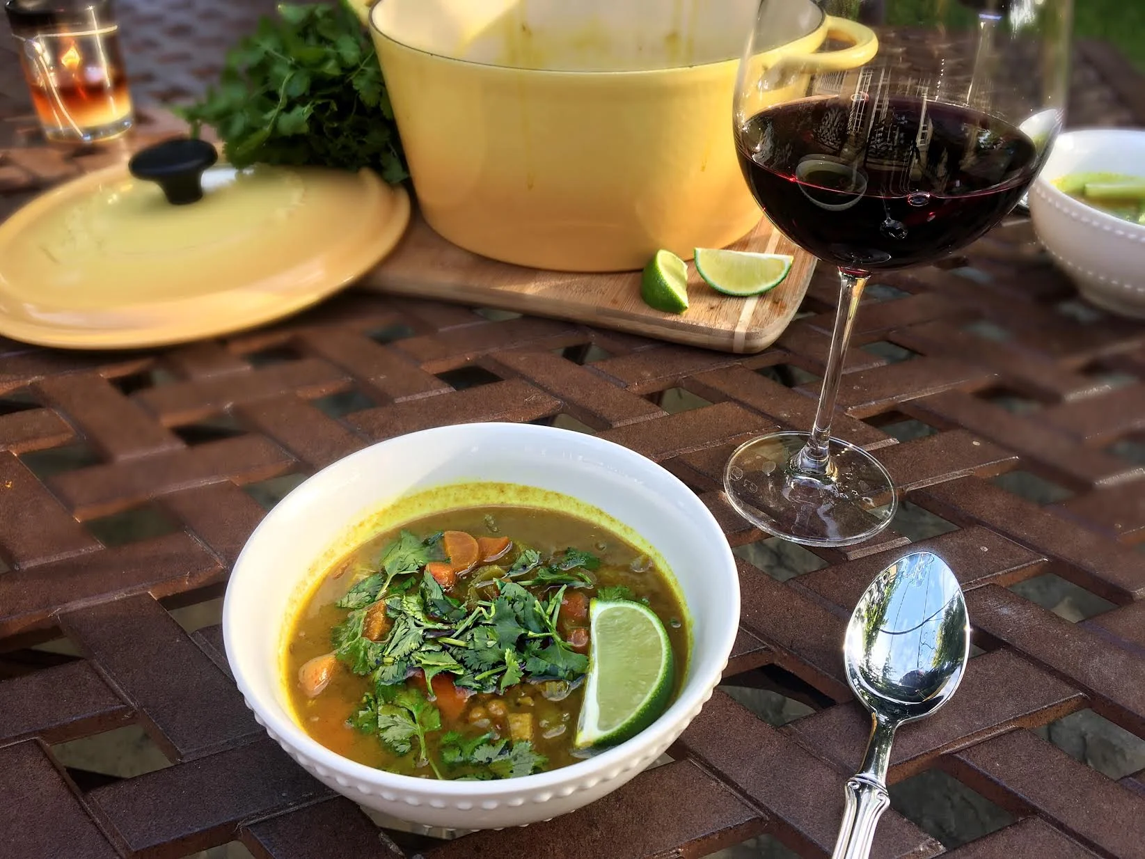 I don't know where you're reading this from, but there's been a chill in Orange County and I am taking personal offense! Met with weather that was below 70 degrees, there was really nothing to do but make soup. I wanted something that would make me feel good, warm me up inside, and still allow for skinny jeans. ....Also, I had a lot of lentils :)
